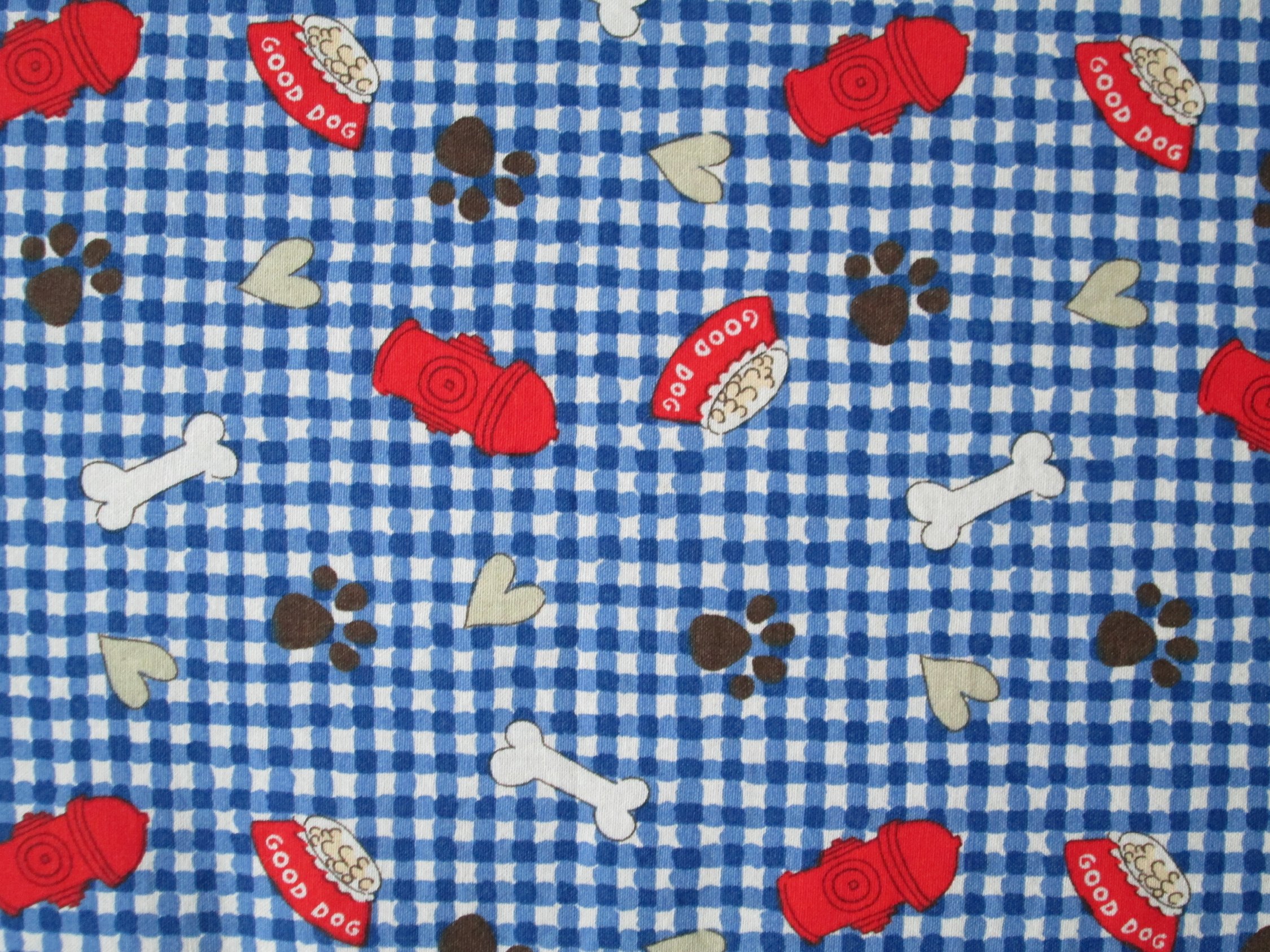 Blue & White Checks w/ Dog Boned, Hydrants & Bowls Cotton Bed, 28.5"x19"