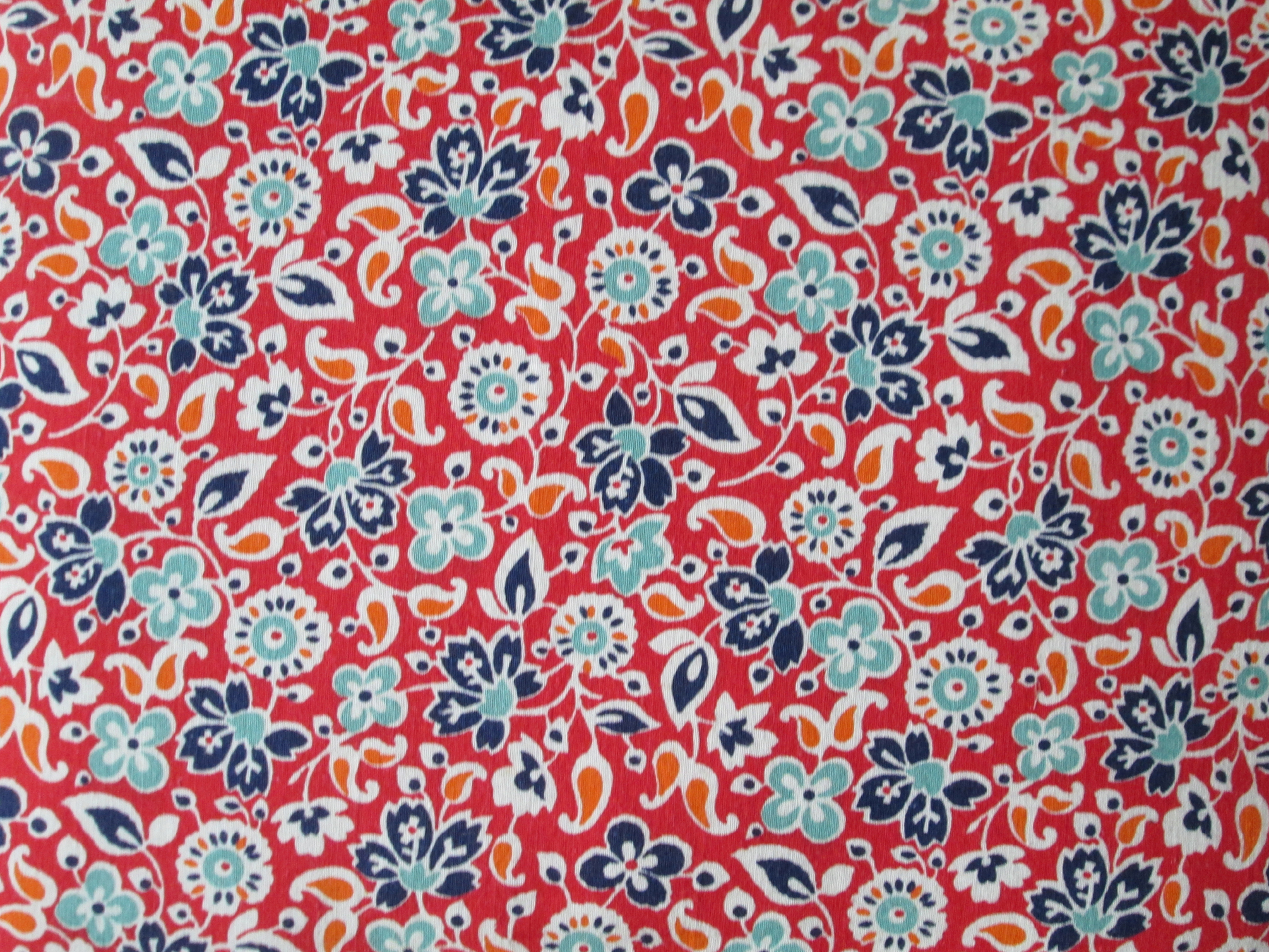 Navy, Lt. Blue, Orange & White Flowers on Red, Reverse all Blue Cotton Bed, 14'x15.5"