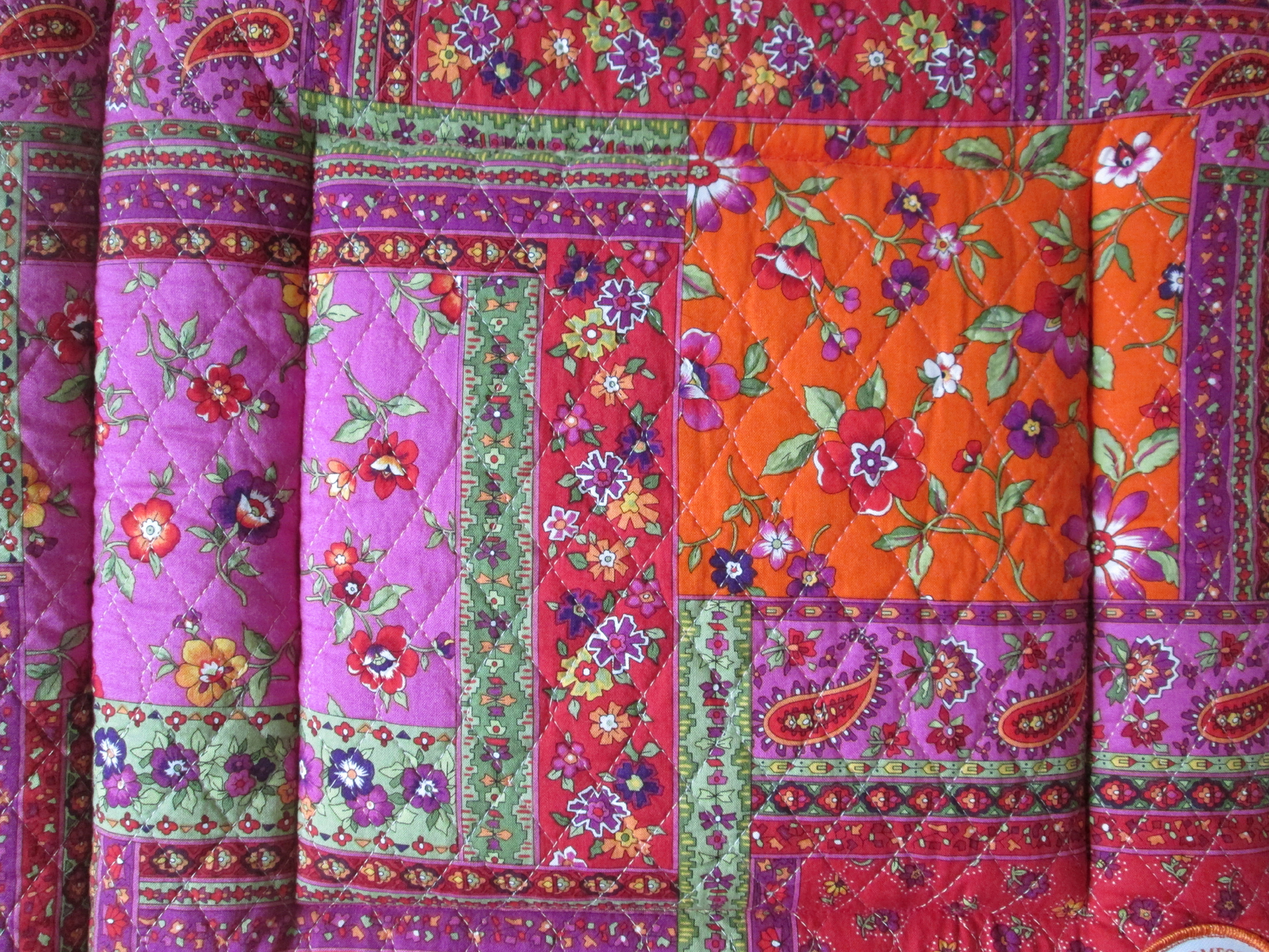 Pink & Orange Patterned Flowers Quilted Cotton Bed, 18.5"x18.5"