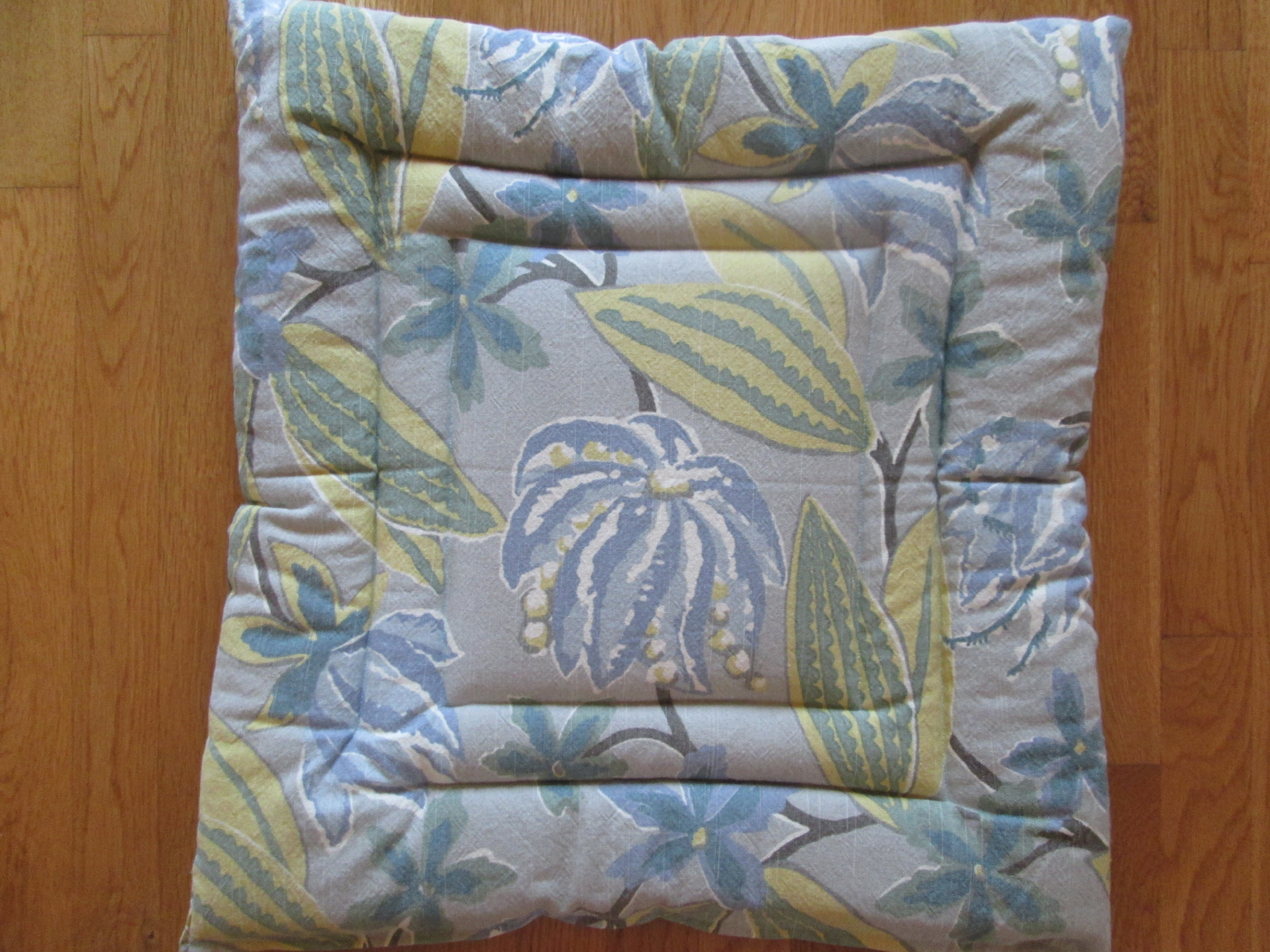 Yellow, Blue, & Green Floral on Gray, Reverse Pastel Yellow, Blue & Green Floral on Lt. Gray Upholstery Fabric Bed, 22"x20"