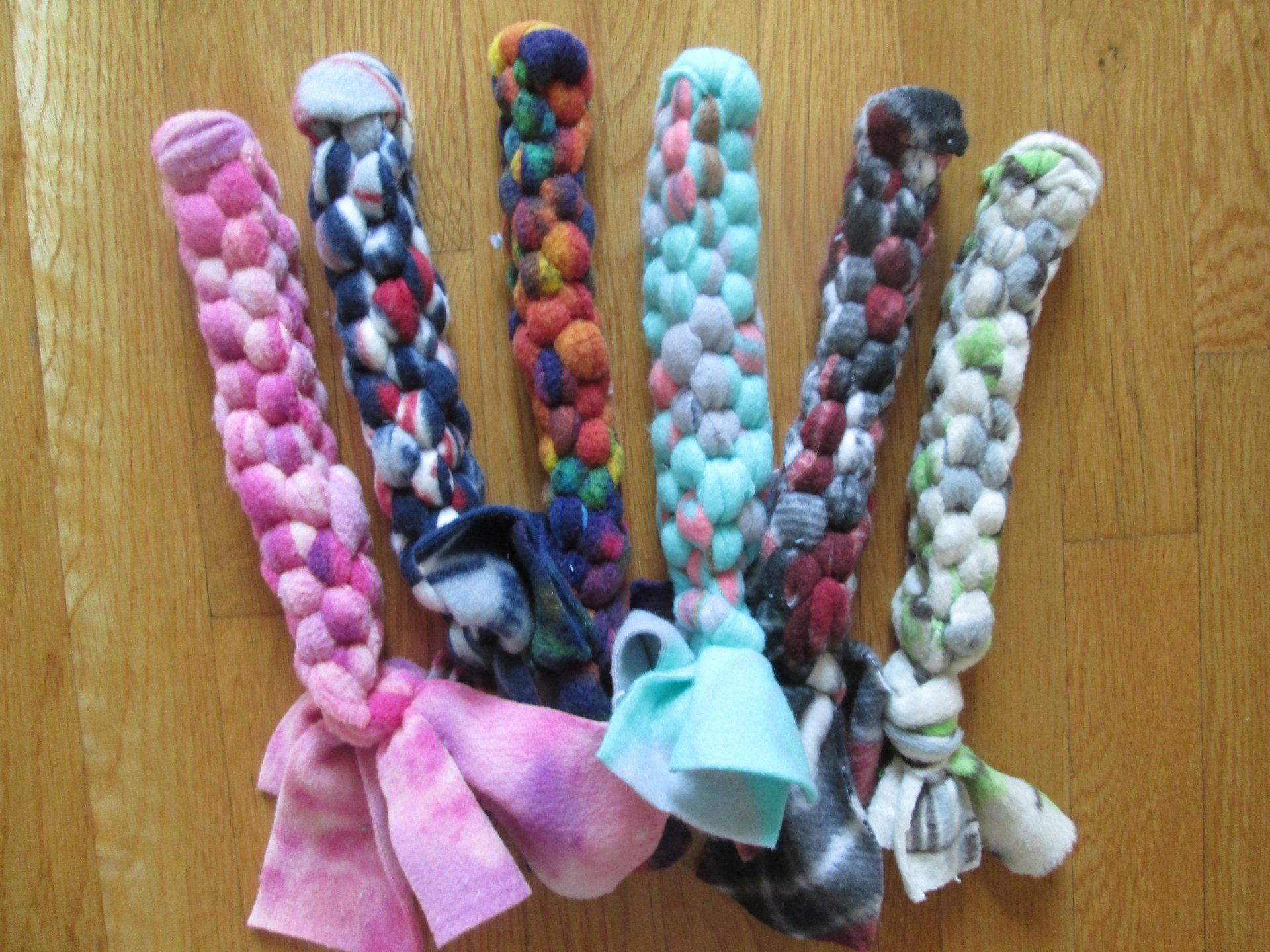 Our handmade dog pull/chew toys make a wonderful gift for any dog lover! Each one of these multi-color toys is different. We cannot guarantee which color you'll receive. The proceeds go directly to Rational Animal & help supply soft beds, catnip toys and dog pull/chew toys to animals in shelters throughout the Tri-State area.