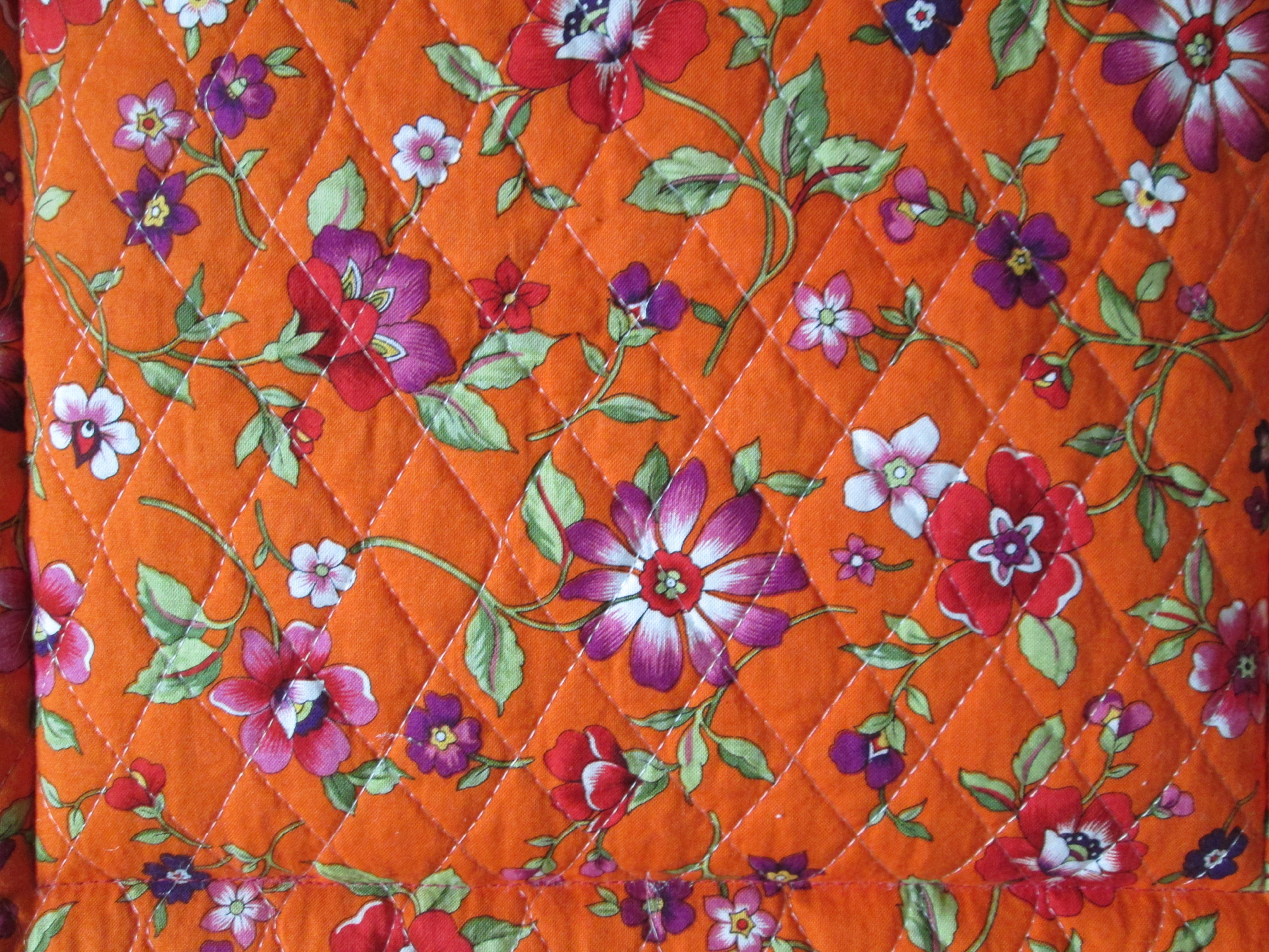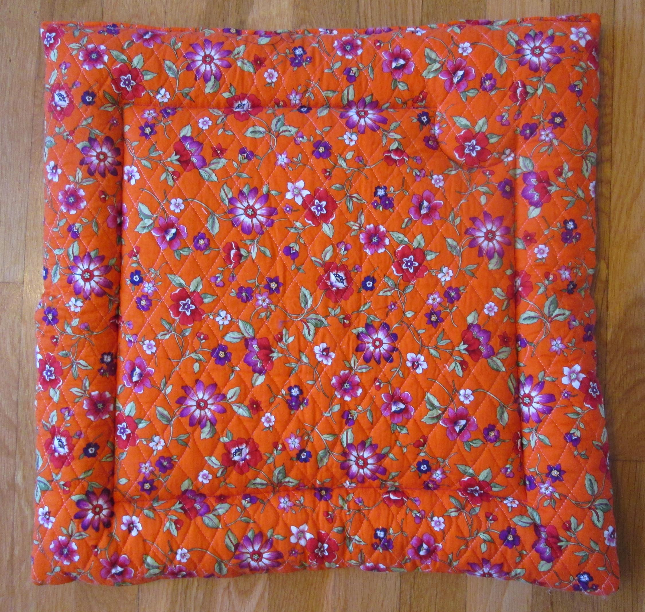 Pink & Orange Patterned Flowers, Reverse Flowers on Orange Quilted Cotton Bed, 19"x19"