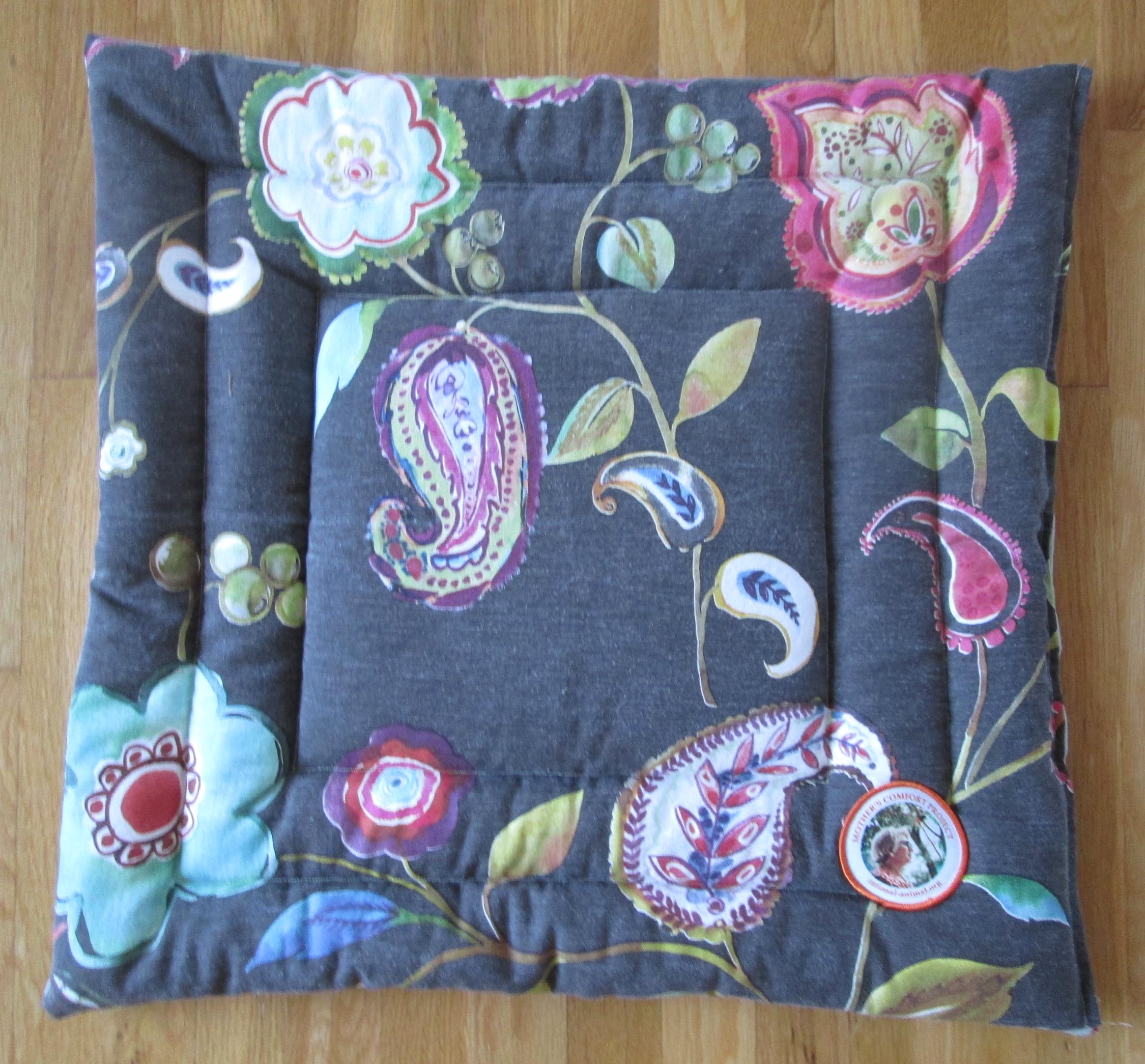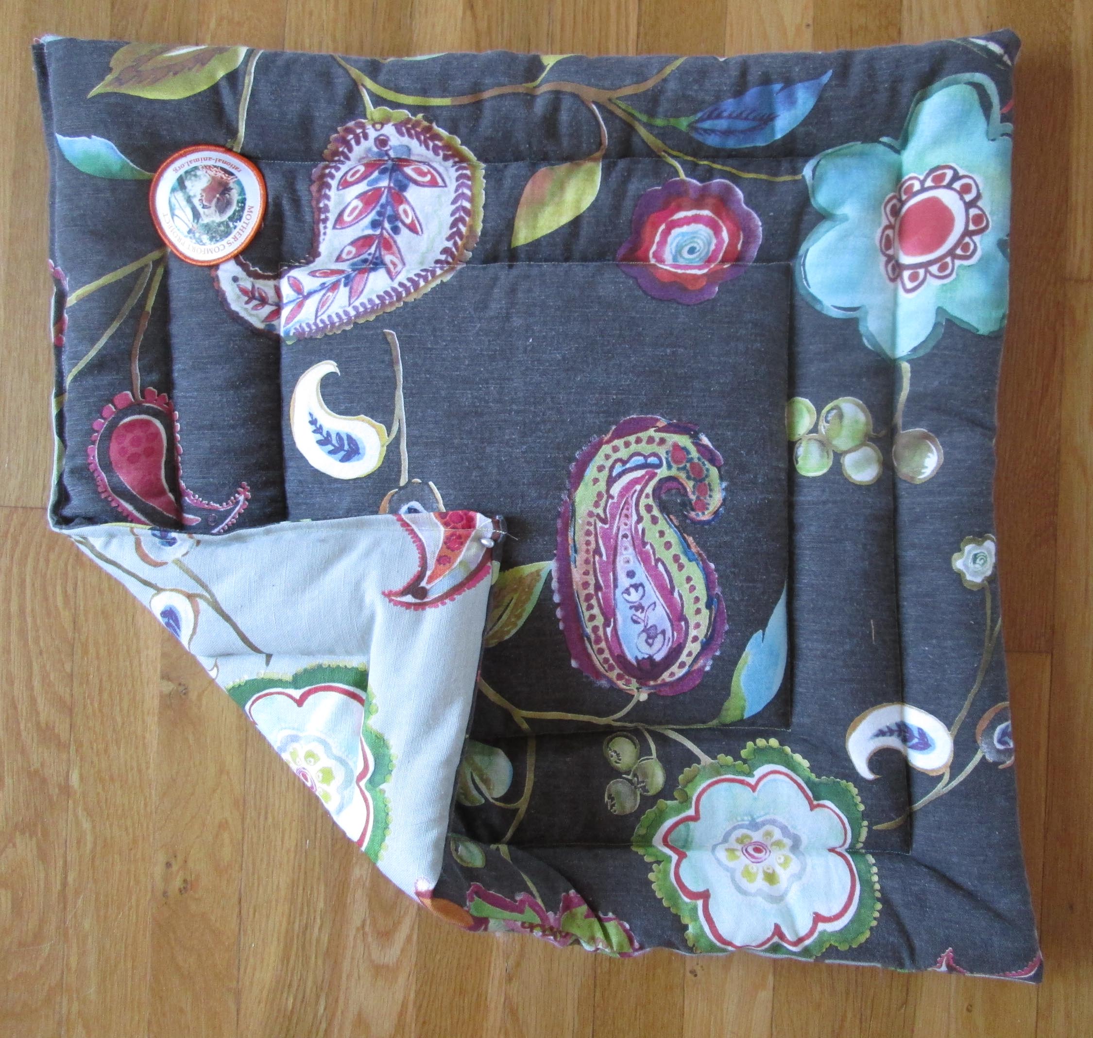 Multi-color Floral on Brown w/ Multi-color Floral Lt. Gray Reverse Upholstery Fabric Bed, 23"x24"