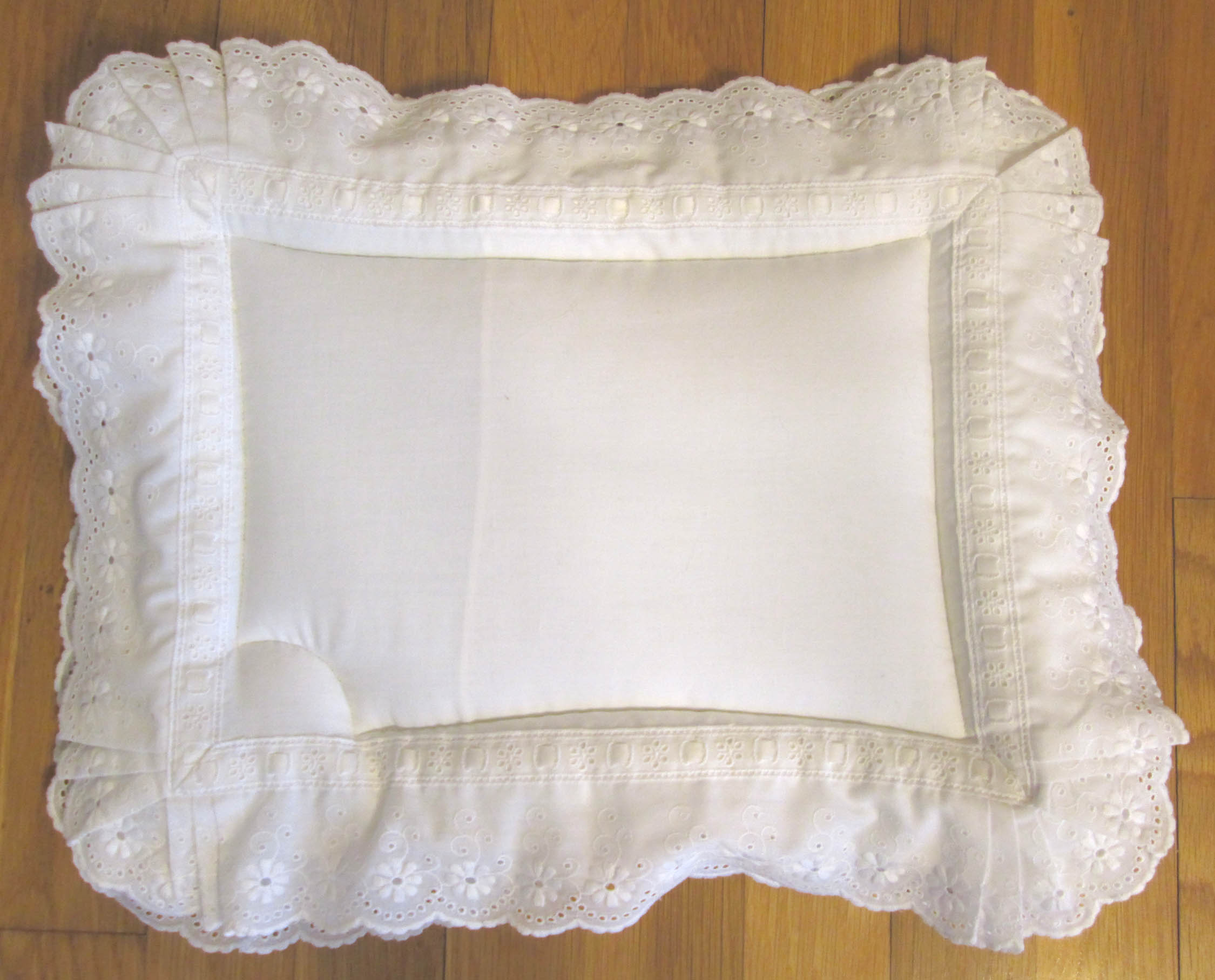 White with White Lace & Yellow Ribbon, Reverse with White Ribbon Cotton Bed, 16.5"x13"