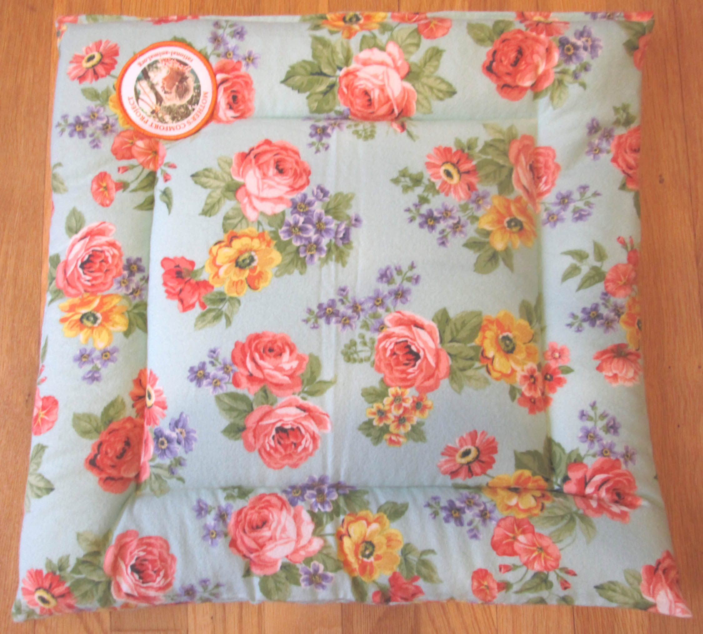 Aqua with Pink, Gold/Orange & Purple Flowers Flannel Bed, 18"x17.5"